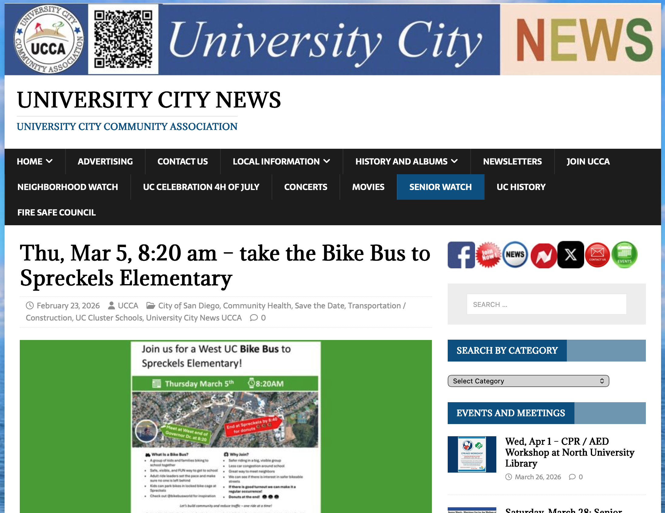 Bike Bus Announcement in UC Monthly Newsletter